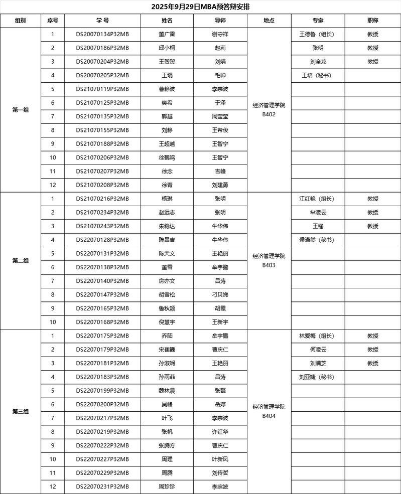 MBA预答辩定于2025年9月29日(周一)上午9:00开始。