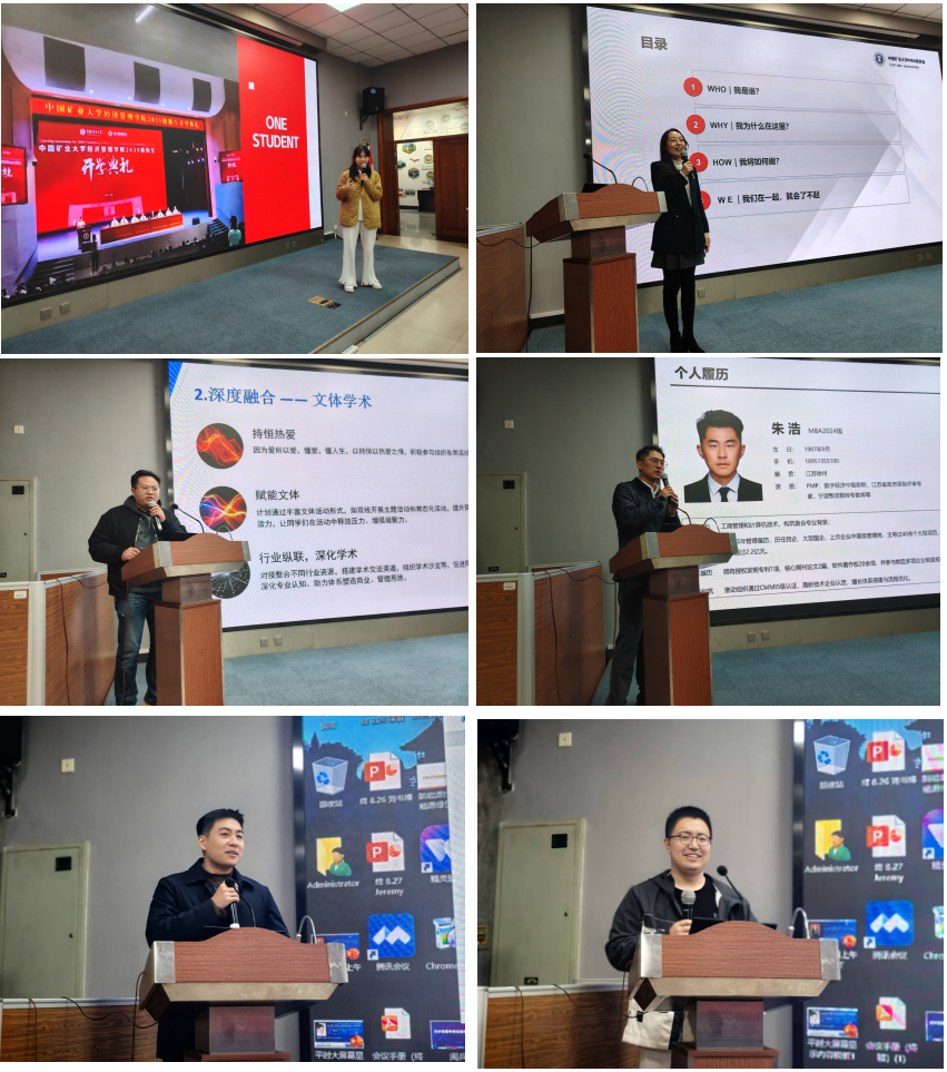 当天的改选大会氛围热烈浓厚,来自24级和25级不同行业背景的20位MBA学员踊跃参与竞选,展现出极高的参与热情与积极主动性。竞选环节中,各位候选人依次登台,结合自身职业履历、管理经验及个人特长,全面展示自身核心优势;同时围绕联合会"团结务实、整合聚力,开拓创新、共同发展、服务同学、回报社会"的宗旨,从学术交流、实践活动、资源整合、服务保障等多个维度阐述工作思路,提出了如深化校企合作沙龙、拓展跨校MBA交流渠道、开展公益助学行动等一系列富有创新性的设想,充分彰显了矿大MBA学子的责任担当与综合素养。候选人的精彩表现赢得现场师生的阵阵掌声,也展现了大家对联合会发展的深度思考。