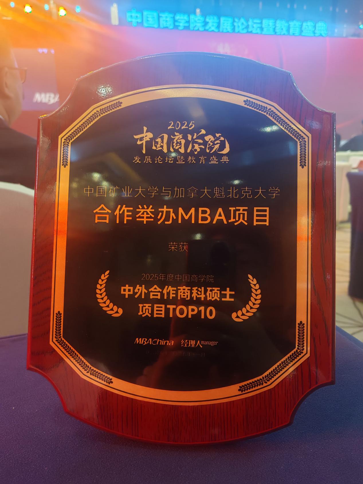 此次多项荣誉的斩获,是业界对中国矿业大学 MBA 项目办学质量、特色发展与社会影响力的高度认可,也是学校在商科教育领域持续深耕的重要成果。未来,中国矿业大学经济管理学院将以此次获奖为契机,继续秉持 “贡献经管新知、培育商业精英、共创社会价值” 的使命,深化教育教学改革,强化特色品牌建设,拓展校企合作广度与深度,持续提升 MBA 项目的核心竞争力与国际影响力,为培养更多具备全球视野、家国情怀与专业素养的高素质管理人才贡献矿大力量。