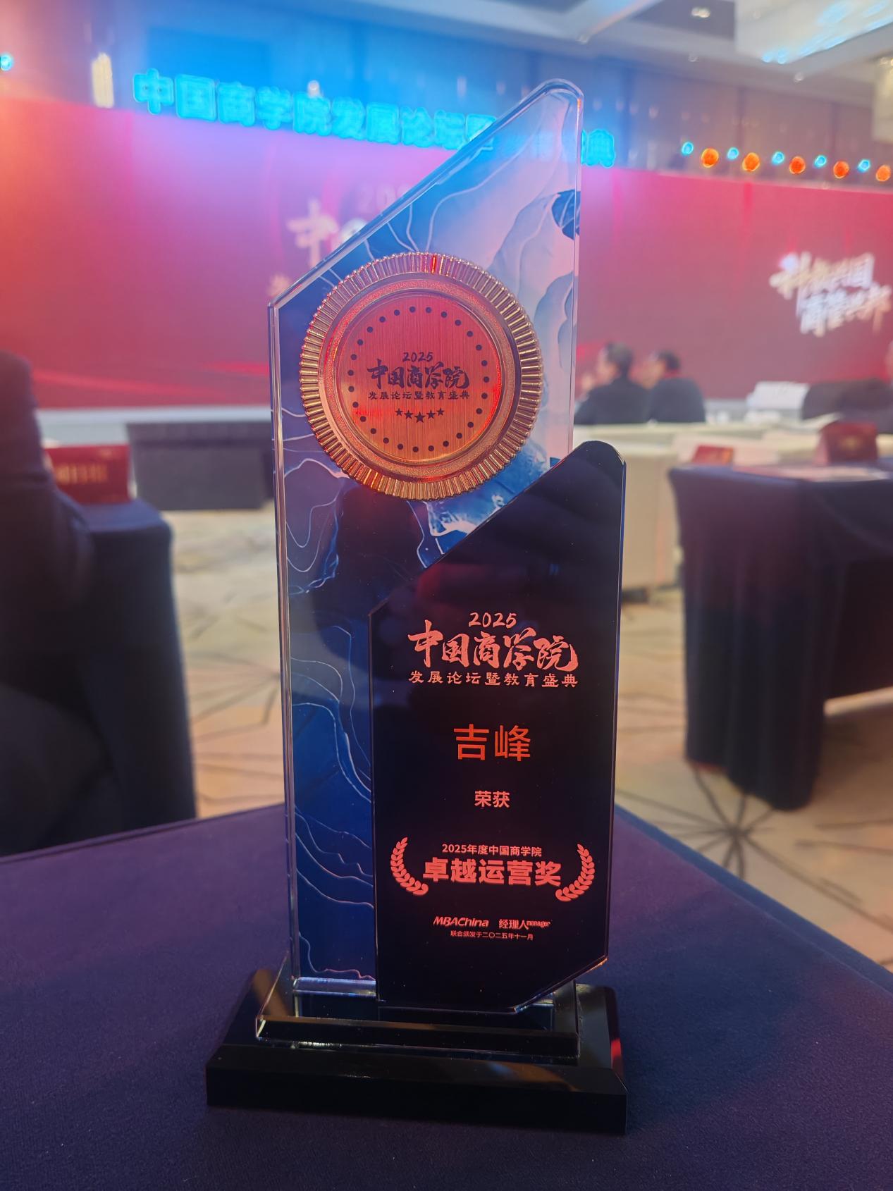 图6 MBA教育中心副主任、MBA专业学位负责人吉峰教授获2025年度中国商学院卓越运营奖
