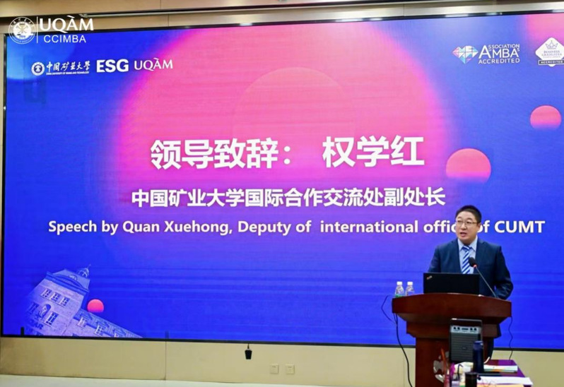 典礼在中加两国国歌声中拉开帷幕。中国矿业大学国际交流处副处长权学红首先代表学校国际合作交流处向来自全国各地的新生表示热烈祝贺,并对经济管理学院及加拿大魁北克大学蒙特利尔校区的鼎力支持致以诚挚谢意。他指出,中加国际MBA项目作为学校国际化办学与中外合作办学的典范,已累计培养超千名高级管理人才,学校将持续深化国际化战略,推动国际交流合作向更高质量发展。