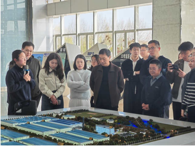 下午,参访团前往江苏秀强玻璃工艺股份有限公司。作为国内玻璃深加工领域的标杆企业,秀强玻璃在智能化生产、高端产品研发、精细化质量管理等方面展现出强劲竞争力。师生一行先后走进零碳研究室、实验室与产品展示区,近距离观察家电玻璃、光伏玻璃等产品的生产工艺与技术细节,感受传统制造业向智能化、高端化转型的发展成效。